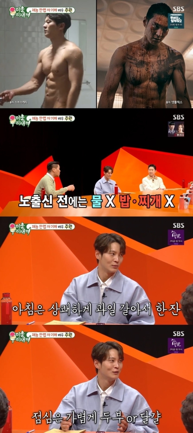 또한 자기관리에 철저한 주원은 이날 노출신을 앞두고는 물과 밥, 찌개를 안 먹은 지 10년이 넘었다고 해 놀라움을 자아냈다.