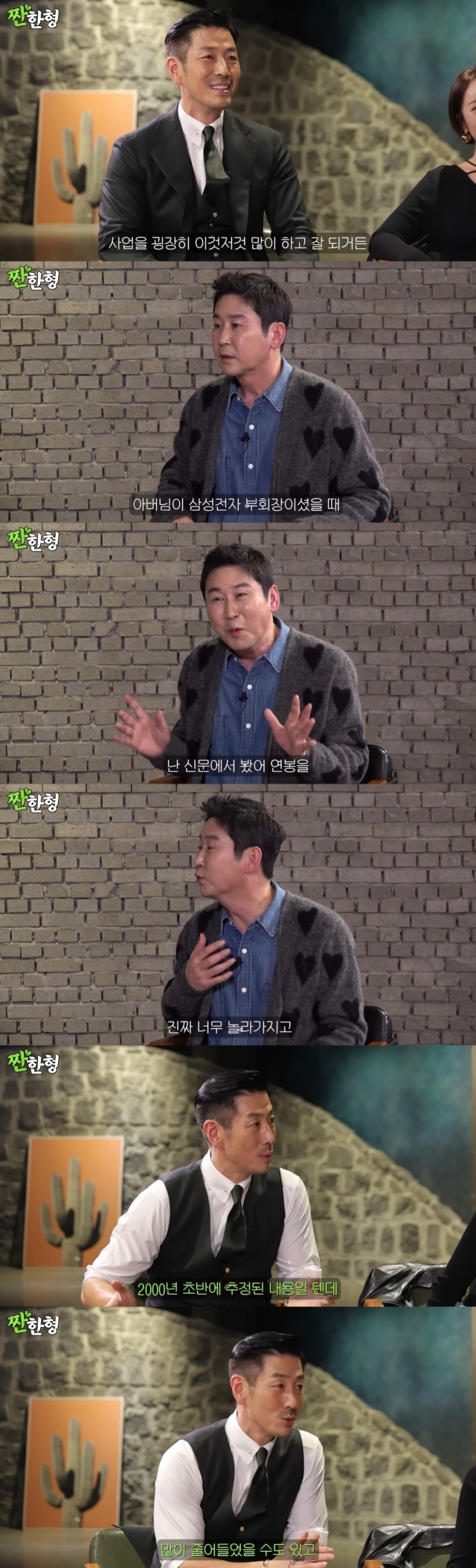 이어 신동엽은 "(윤태영) 아버님이 삼성전자 부회장이셨을 때 난 신문에서 봤다 연봉을. 진짜 너무 놀라가지고"라고 했다. 윤태영은 "예전에는 아버님한테 폐가 되는 게 싫어서 얘기를 안했던 거다. 근데 사실 2000년 초반에 추정된 내용일 텐데 그게 뭐 어마어마하게 늘어났을 수도 있고, 뭐 잘못 돼서 많이 줄어들었을 수도 있고"라고 이야기했다.