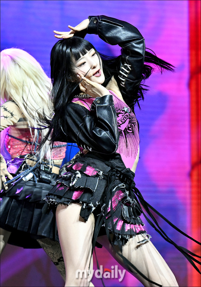 [마이데일리 = 송일섭 기자] 그룹 키스오브라이프(KISS OF LIFE) 하늘이 3일 오후 서울 광장동 예스24라이브홀에서 진행된 첫 번째 싱글 앨범 'Midas Touch'(마이다스 터치) 발매 쇼케이스에서 열정적인 무대를 선보이고 있다.