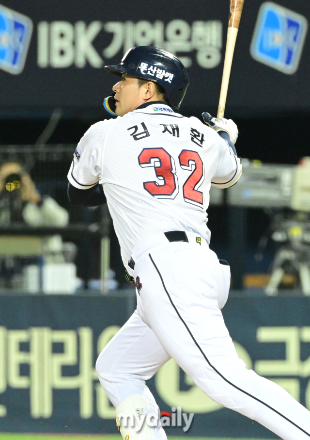 이승엽 감독의 극찬 "김재환 상징하는 그 스윙"