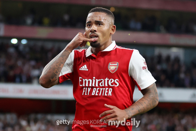 [아스날 공격수 제주스, 아스날과 바이에른 뮌헨의 2023-24시즌 UEFA 챔피언스리그 8강 1차전 경기장면. 사진 = 소파스코어/게티이미지코리아]