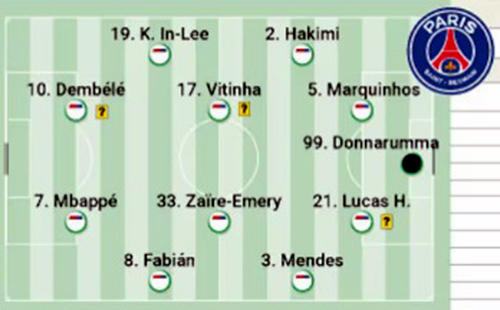 UEFA는 PSG의 바르셀로나전 선발 명단을 예측하면서 이강인을 포함시키지 않았다. UEFA는 PSG가 바르셀로나를 상대로 뎀벨레, 음바페, 바르콜라가 공격수로 출전하고 에메리, 비티냐, 루이스가 미드필더로 나설 것으로 예상했다. 수비진은 멘데스, 에르난데스, 마르퀴뇨스, 하키미가 구축하고 골키퍼는 돈나룸마가 출전할 것으로 점쳤다.