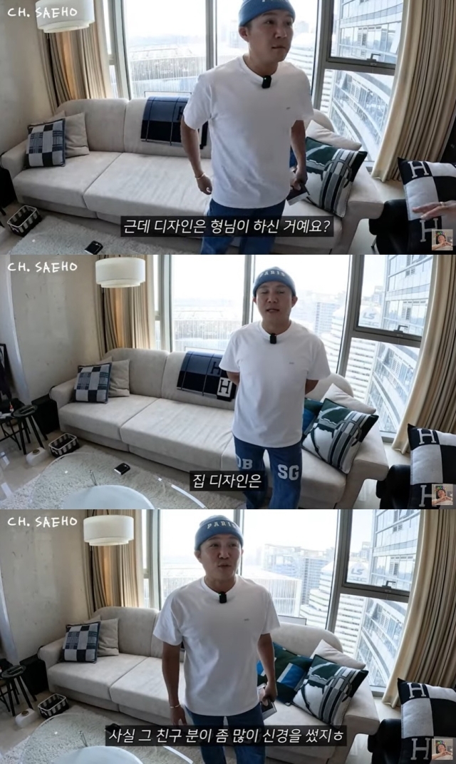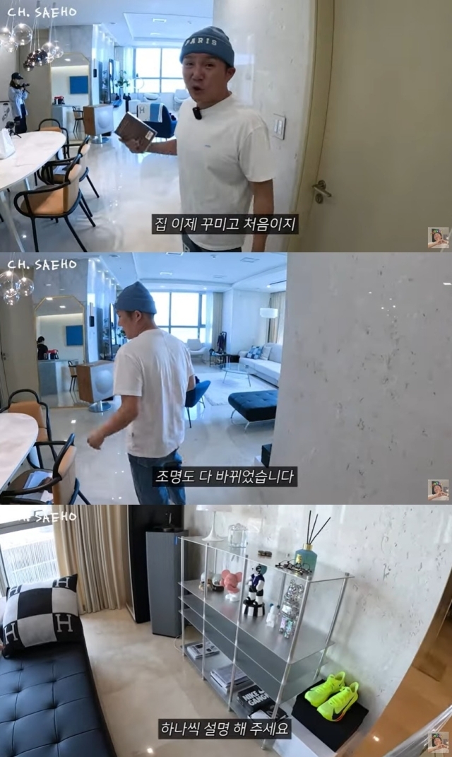 영상 속 조세호는 "새롭게 이사 온 용산 집이다"라며 집 소개를 시작했다. 널찍하고 탁 트인 거실이 시선을 사로잡았다. 조세호는 장식장과 공기청정기를 보여주며 "집 디자인은 그 친구 분이 신경을 많이 썼다"며 예비 신부를 언급했다.
