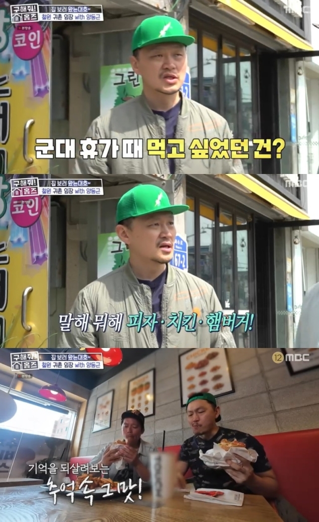 이날 김대호는 양동근에게 "첫 휴가나 외박나오면 어떤 음식이 가장 먹고 싶었냐"고 물었다. 양동근은 "제일 단순한 피자, 치킨 햄버거"라고 답했다. 그러자 김대호는 한 패스트푸드 매장을 가리키며 "(점심으로) 버거는 어떻냐. 군대리아 먹다가 이런 걸 먹으면 난리난다"고 말했고 양동근 역시 "난리난다"며 거들었다.