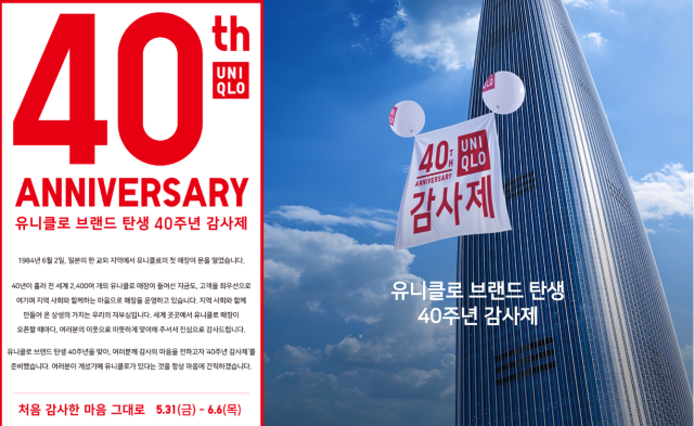 유니클로 관계자는 "1984년 6월 2일 한 교외 지역에서 시작한 유니클로가 지금은 전세계 2400여개 매장을 운영하고 있다"며 "고객이 있었기에 유니클로가 있다는 감사의 마음으로 40주년 감사제를 준비했다"고 말했다.