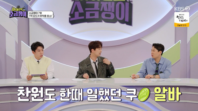이를 들은 이찬원은 혀를 내두르며 "저 쿠팡 진짜 많이 했거든"이라고 털어놓은 후 "쿠팡 최저 시급 주잖아? 9,860원"이라고 물었고, 소금쟁이 7호는 "최저시급에 연장 수당이 있을 경우에 연장 수당도 주고 야간에 하면 야간 수당도 주고"라고 밝혔다.