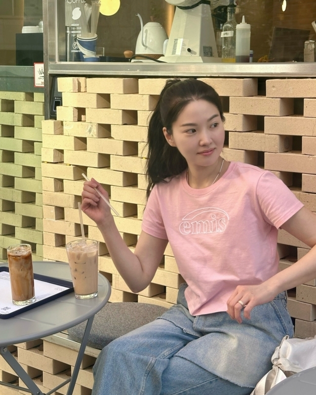 류이서는 전진과 카페에서 데이트 중인 모습이다. 핑크 컬러의 티셔츠에 청바지를 입고 포니테일 헤어스타일을 한 류이서의 산뜻한 미모가 돋보인다.