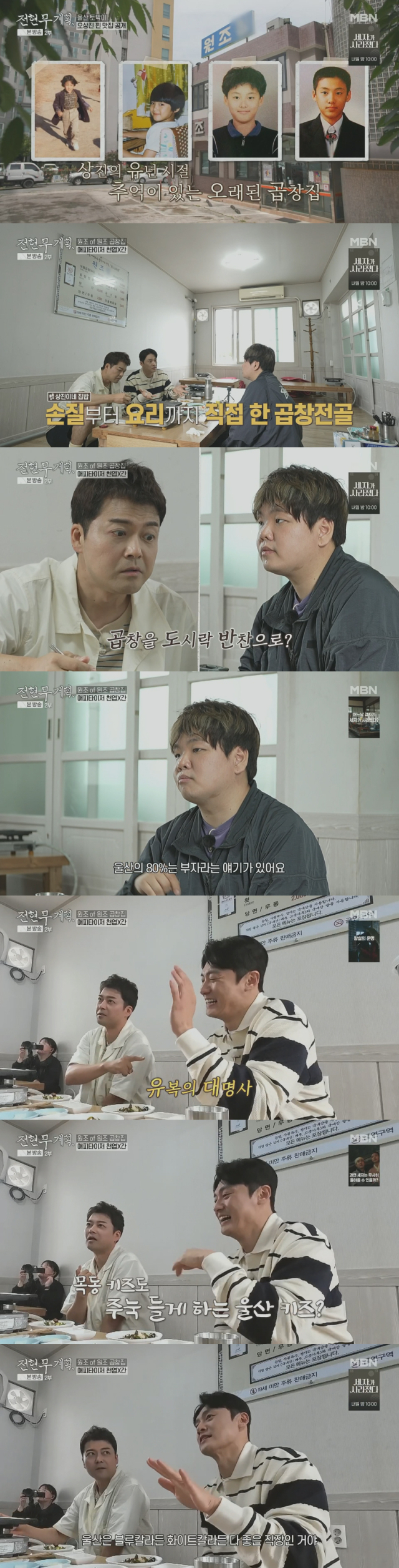 오상진은 이어 "그래서 제가 추천하는 맛집은 진짜 제가 어린 시절 엄마 손 붙잡고 다닐 때부터 갔던 식당이다. 곱창 거리를 만든 원조집. 50년 넘는 역사를 자랑하는 노포. 나는 솔직히 자신 있다. 왜냐하면 진짜로 여기는 원조 오브 원조니까"라면서 전현무와 곽튜브를 자신의 곱창 단골집으로 이끌었다.