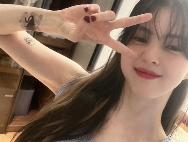 한소희는 23일 근황이 담긴 사진 여러 장을 업로드했다. 사진 속 한소희는 카메라를 응시하며 포즈를 취하는 모습. 한소희의 미모와 함께 쇄골 밑, 팔목, 팔뚝에 새겨진 타투가 시선을 사로잡는다.