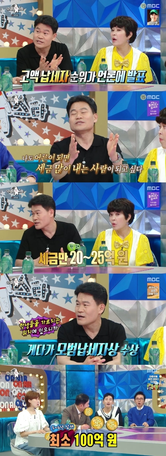 그러면서 "실제로 요즘에 (한 해에) 세금만 20~25억 정도 납부하고 있다. 그럼에도 제가 모범납세자상도 받았다. 학생들을 가르치는 위치에 있으니까 귀감이 되지 않겠나 싶다"며 웃었다.