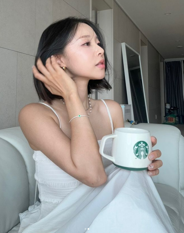 18일 이솔이는 개인 계정에 '머그잔 들고 쨘, 저희 부부 여름 휴가 잘 떠나용 다녀올게요 모두 비 조심!' 이라는 문구와 함께 두 장의 사진을 게재했다.