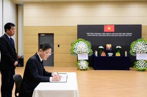 이재용 회장은 최근 해외 출장에 앞서 서울 종로구에 있는 주한베트남 대사관에 마련된 고인 분향소를 찾아 조문했다. 이 회장은 2014년 10월 삼성전자 서초사옥을 방문한 쫑 서기장을 맞아 삼성전자의 베트남 사업 현황을 설명하고 협력 강화 방안 등을 논의했다.