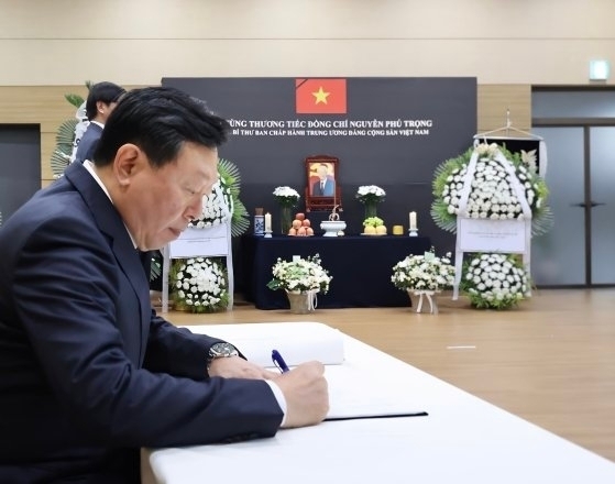 최 회장은 조문록에 '베트남의 번영을 위해 헌신하신 서기장님의 영면을 기원합니다. 앞으로도 베트남의 발전에 한국 경제가 든든한 동반자가 되겠습니다'라고 적었다.