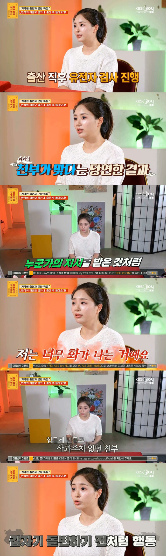 생후 120일 된 딸과 다시 '물어보살'을 찾은 김카니는 "저번 출연 때 친부가 '태아 인지(혼인 외의 출생자를 그의 생부 또는 생모가 자기의 자녀라고 인정하는 행위)'를 회피해서 제가 저와 아이를 지키려고 나왔었다"고 운을 뗐다. 미혼인은 출생신고 절차가 복잡하다. 게다가 김카니는 미국 국적이라 더욱 어려운 상황이라고.