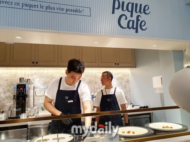 정원과 연결된 1층 공간에는 ‘피케 카페’가 문을 열었다. 제품을 둘러본 후 젤라또, 크레페, 레몬소다 소르베 등 디저트를 즐기며 휴식을 취할 수 있도록 마련된 공간이다. 브랜드 콘셉트를 표현한 음식을 접목해 고객에게 ‘맛있는 기분’을 전달하고자 했다.