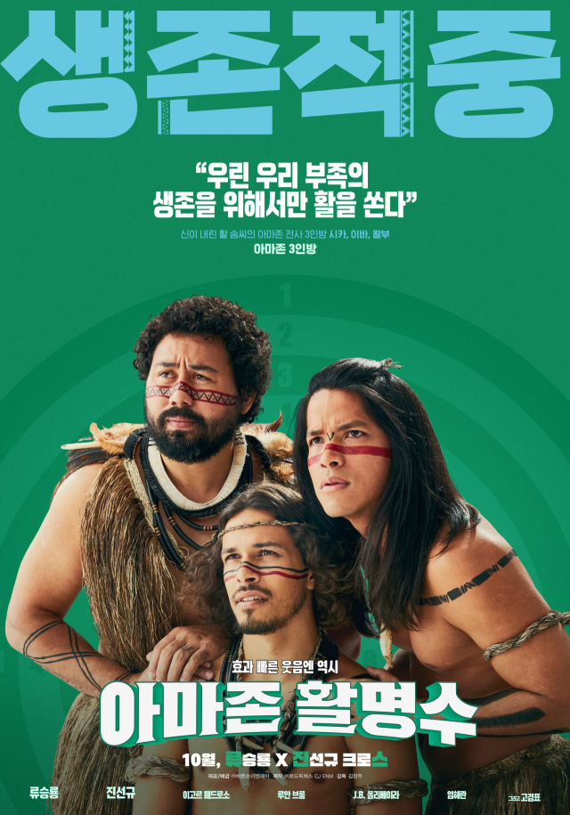 영화 '아마존 활명수'는 집에서도 회사에서도 구조조정 대상인 전 양궁 국가대표 진봉(류승룡)이 한국계 볼레도르인 통역사 빵식(진선규)과 신이 내린 활 솜씨의 아마존 전사 3인방을 만나 제대로 한 방 쏘는 코믹 활극이다.