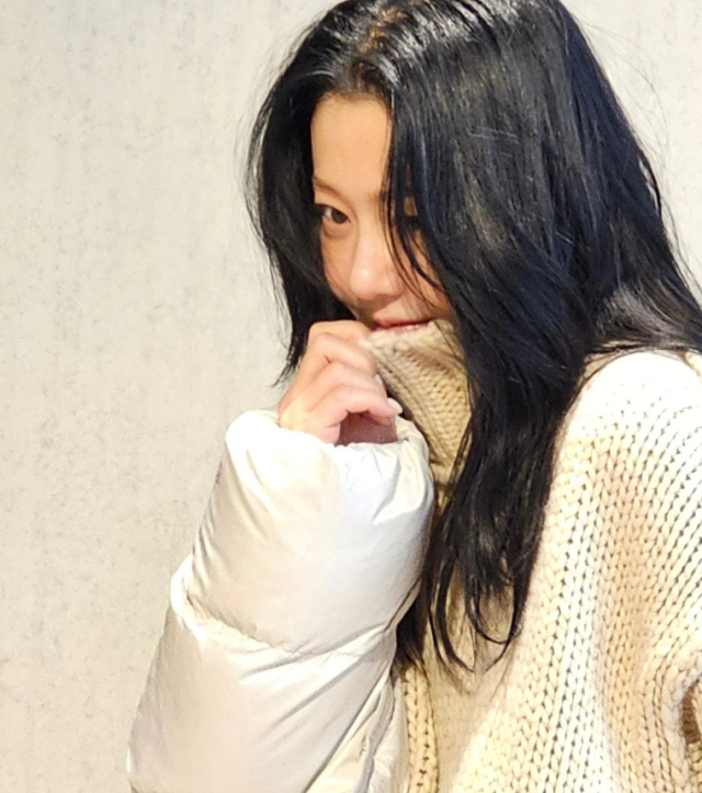 사진 속 고현정은 크림색 니트와 아이보리 패딩을 입고 손톱을 물어 뜯는 모습이다.