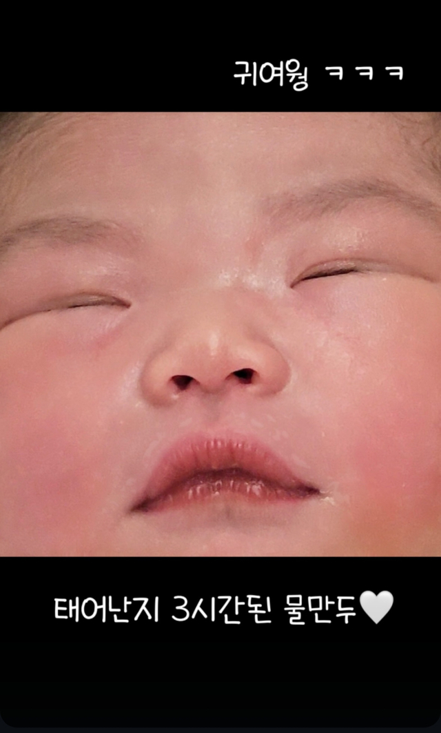 박수홍, 김다예 부부는 지난 15일 딸의 소셜미디어 계정을 통해 "귀여웡 ㅋㅋㅋ 태어난 지 3시간 된 물만두♥"라는 글과 함께 벌써부터 짙은 쌍꺼풀을 자랑하는 딸의 사진 한 장을 업로드 했다.