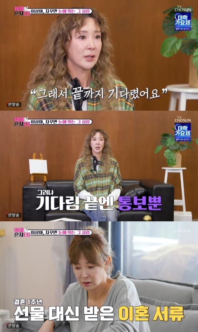 15일 방송된 종합편성채널 TV CHOSUN '이제 혼자다'에서는 이상아가 출연해 이혼 과정에서 받아야 했던 상처들에 대해 고백했다.