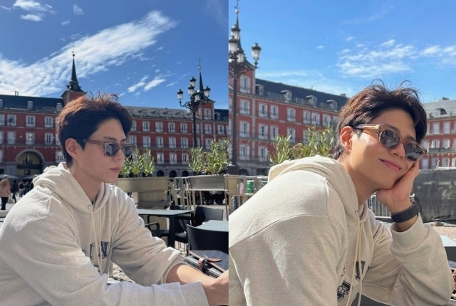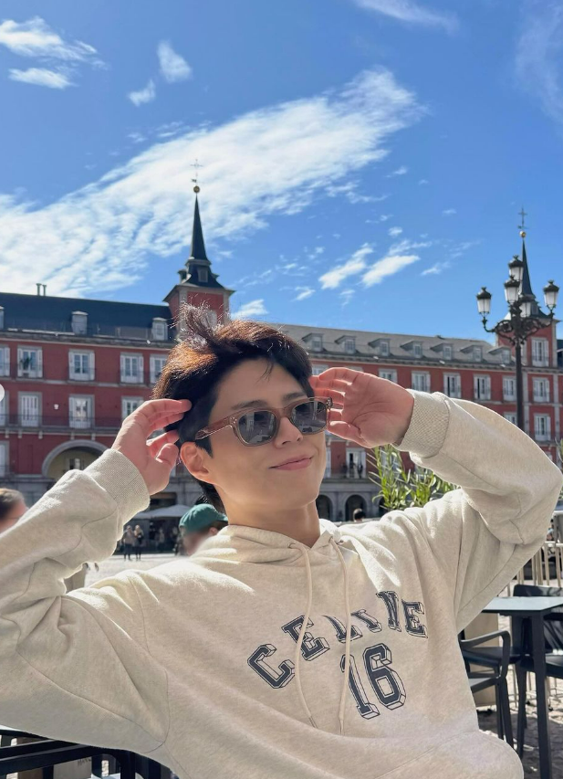 사진 속 박보검은 스페인 마드리드의 한 거리에서 시간을 보내고 있는 모습이다. 선글라스를 낀 박보검은 편안한 후드 티셔츠를 착용하고 카메라를 향해 미소를 짓는 등 다양한 포즈를 취하고 있다.