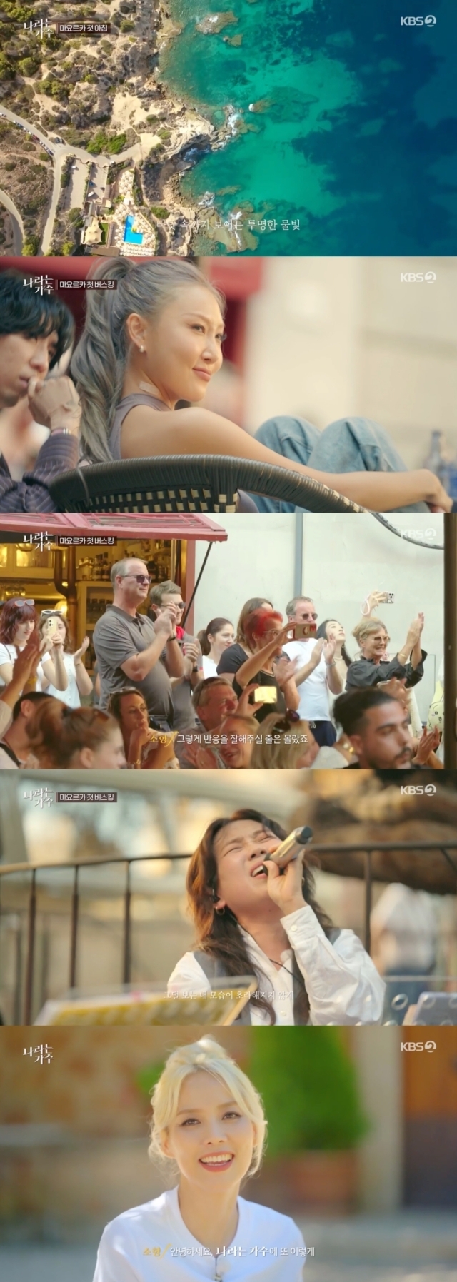 2일 오후 첫 방송된 KBS2 예능 프로그램 '나라는 가수'에서는 스페인 마요르카로 떠난 멤버들의 모습이 그려졌다. 이번 스페인 편에는 화사, 소향, 헨리, 안신애와 프로듀서 구름, 기타리스트 자이로가 함께 했다.