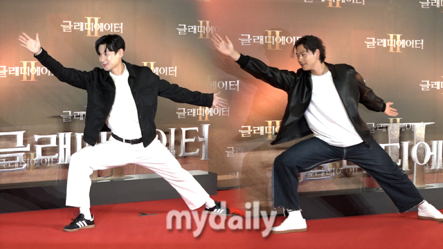 [마이데일리 = 김도형 기자] 5일 서울 용산 CGV에서 영화 '글래디에이터2' VIP 시사회가 열렸다. 펜싱선수 구본길, 오상욱이 참석해 포즈를 취하고 있다. 새로운 영웅의 등장, 긴장감 넘치는 서사와 한층 강력하고 스펙터클한 액션 볼거리로 돌아온 '글래디에이터2'는 오는 13일 전 세계 최초 개봉 예정이다.