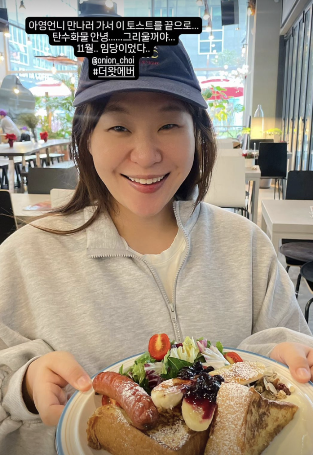 9일 정주리는 자신의 SNS에 “아영 언니 만나러 가서 이 토스트를 끝으로 탄수화물은 안녕. 그리울 거야, 11월.. 임당이야”라는 글과 함께 근황을 담은 사진을 올렸다.