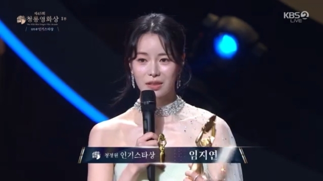 임지연은 "인기 많은 사람한테 주는 상이냐. 처음 받아봐서 잘못들은 줄 알았다. 너무너무 감사하다. 그 어떤 상보다 너무너무 행복하다. 감사하다"고 기쁨을 전했다.
