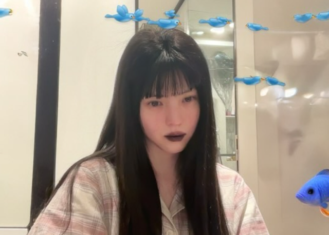 사진 속 한소희는 긴 생머리를 늘어뜨리고 앞머리를 내린 모습. 여기에 한소희는 직경이 큰 컬러렌즈를 착용하고 블랙립을 시도하며 다크하면서도 몽환적인 비주얼을 드러냈다.