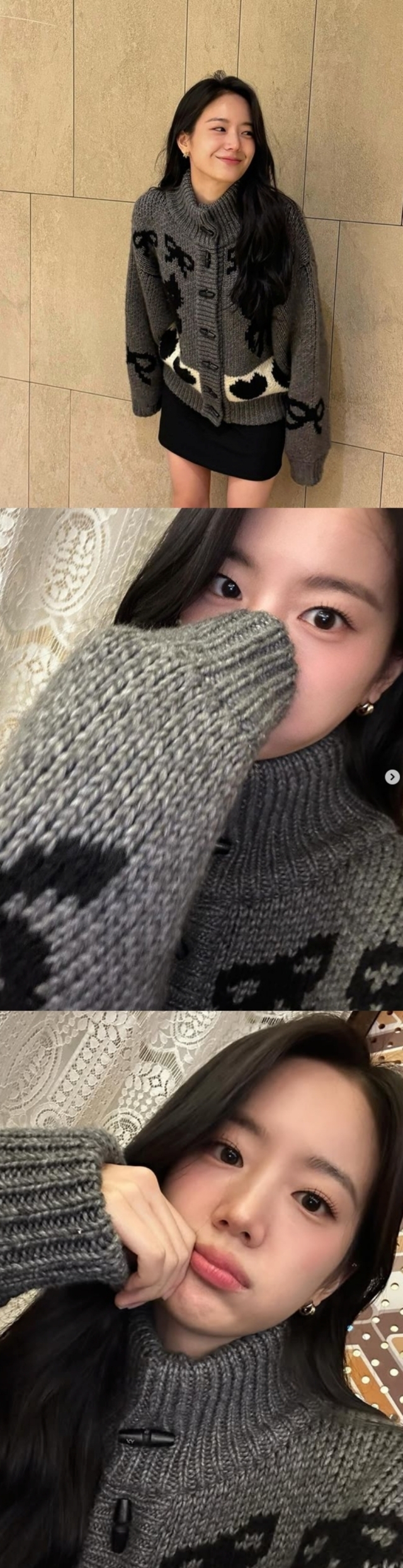 사진 속에는 그레이 터틀넥을 입고 포근한 겨울 패션을 선보인 장규리의 모습이 담겼다. 블랙 미니 스커트에 베이지 어그 부츠로 사랑스러운 분위기를 연출했다.