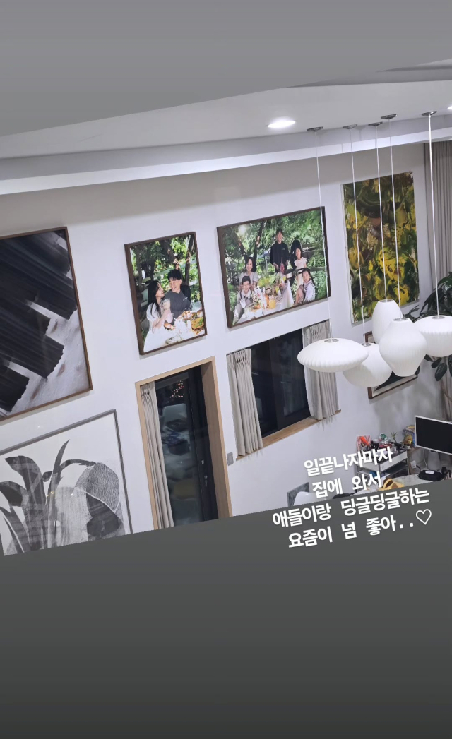 이후 소유진은 "일 끝나자마자 집에 와서 애들이랑 딩글딩글하는 요즘이 넘 좋아...♡"라는 글과 함께 2층에서 촬영한 화목한 거실 풍경을 추가했다.