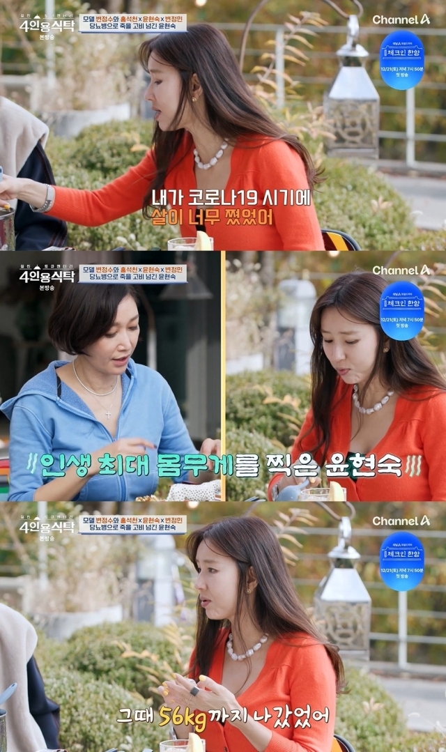 이날 윤현숙은 "맛있는 거 마음껏 먹으려면 지금부터 다들 건강 관리를 잘 해야한다"며 "내가 코로나19 시기에 살이 너무 쪘었다. 인생 최대 몸무게를 찍었다. 배달 음식을 많이 먹었다"고 털어놨다.