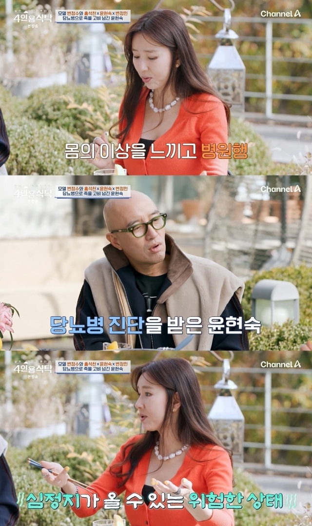 윤현숙은 "그때부터 인슐린 처방을 받았다. 의사가 '집에 혼자 있으면 위험하다'고 해서 아는 언니 집에 갔다. 저혈당도 위험한데, 수치가 49까지 떨어지기도 했다. 기절 직전이다. 기절하면 죽는 거다"고 말했다.