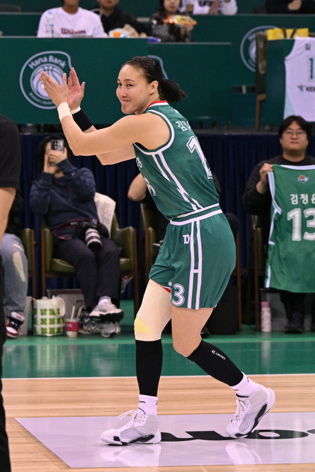 김정은은 이날 경기 첫 득점으로 신기록을 작성하는 데 성공했다. 김단비가 던진 첫 번째 슛이 그대로 림을 통과했다. 정선민 감독을 넘어 WKBL 통산 최다 득점 1위 자리에 오른 순간이었다. 김정은은 이후 6점을 더 추가했다. 통산 8147점.