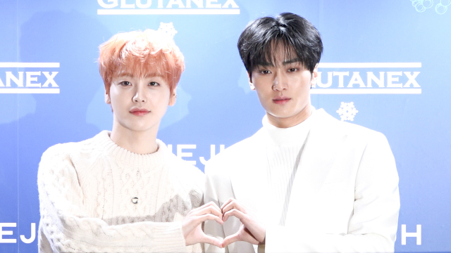 이날 배우 송지효, 그룹 크래비티 형준, 태영, 영파씨 등이 참석해 자리를 빛냈다. 형준, 태영이 포토타임을 가지고 있다.
