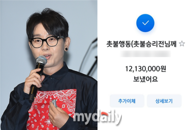 [마이데일리 = 박로사 기자] 가수 이승환이 시민단체 촛불행동에 1213만 원을 기부했다.