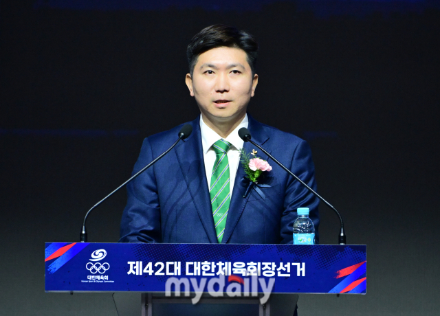 [마이데일리 = 한혁승 기자] 기호 3번 유승민이 14일 서울 방이동 올림픽공원 올림픽홀에서 진행된 제42대 대한체육회장 선거에 참석해 정견 발표를 하고 있다.