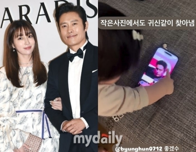 이를 두고 이민정은 “작은 사진에서도 귀신같이 찾아냄”이라고 했다. 그러면서 해당 영상에 이병헌 계정을 태그하며 "좋겠수"라고 글을 남겨 웃음을 자아냈다.