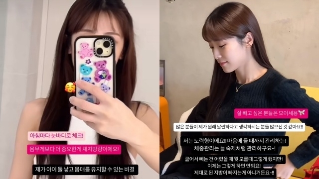 소율은 지난 15일 자신의 개인 SNS를 통해 "아침마다 눈바디로 체크! 몸무게보다 더 중요한 게 체지방량이에요! 제가 아이 둘 낳고 몸매를 유지할 수 있는 비결 함께 하실래요~?"라는 글을 업로드 했다.