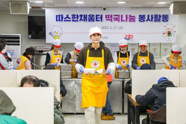 이승기는 17일 대한적십자사와 함께 서울역 인근 무료급식시설 따스한채움터에서 취약계층을 위한 떡국 나눔 봉사활동을 진행했다.