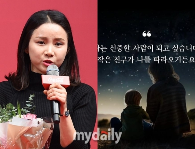 이와 함께 공개한 사진에는 "나는 신중한 사람이 되고 싶습니다. 작은 친구가 나를 따라오거든요."라는 글이 적혀있어 눈길을 끈다.