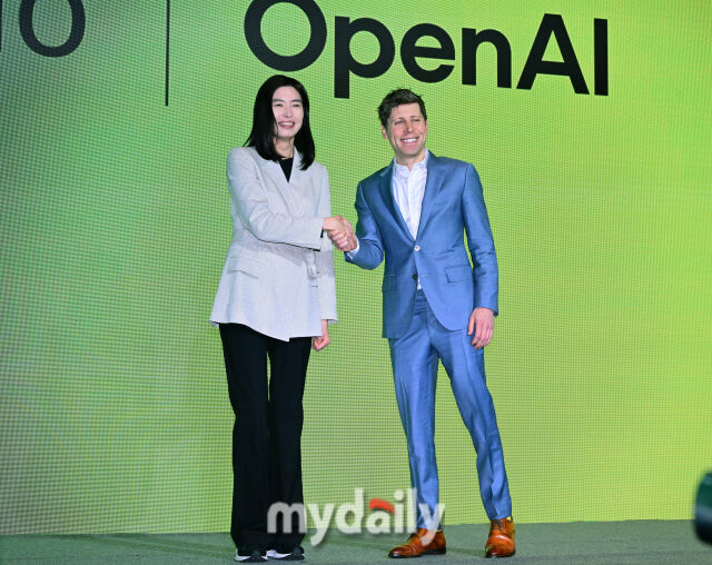 [마이데일리 = 한혁승 기자] 정신아(왼쪽) 카카오 대표와 샘 올트먼 챗GPT 개발사 오픈AI 창업자가 4일 서울 태평로 더플라자 호텔에서 진행된 카카오 미디어데이에 참석했다.