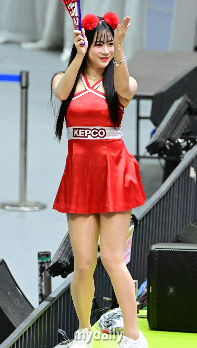 [마이데일리 = 수원 곽경훈 기자] 치어리더 김한나가 4일 오후 경기도 수원실내체육관에서 진행된 ‘도드람 2024-2025 V-리그’ 한국전력- 대한항공의 경기에서 응원을 펼치고 있다.