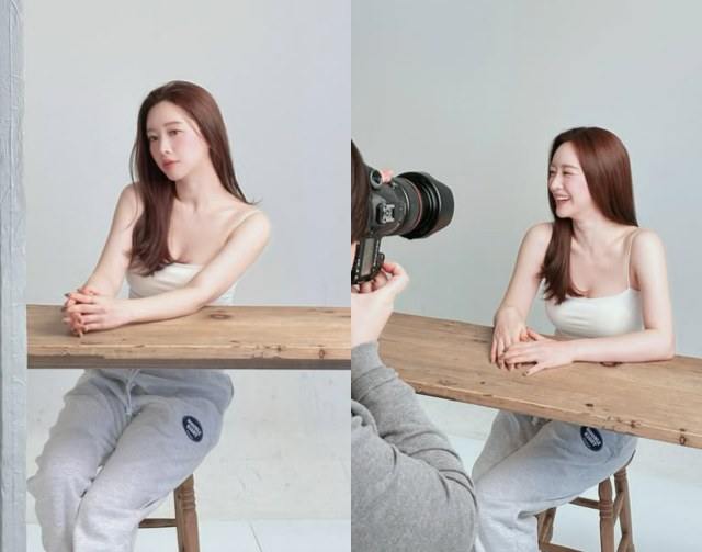 사진 속 홍수아는 프로필 촬영에 임하는 듯한 모습. 하얀 민소매 톱에 편안한 바지를 매치했다.