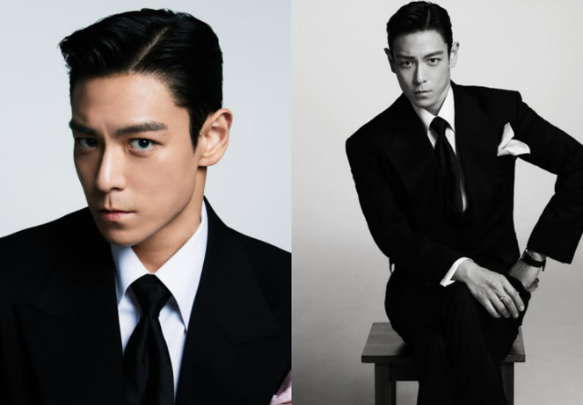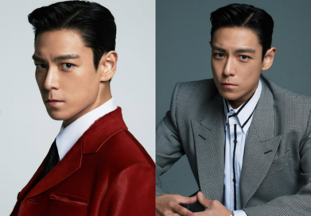 사진에는 다양한 색상의 수트를 입고 포즈를 취하는 탑의 모습이 담겨있다. 탑은 카리스마 넘치는 모습부터 여유로운 모습까지 다양한 매력을 발산하고 있다. 조각 같은 강렬한 이목구비가 감탄을 자아낸다.