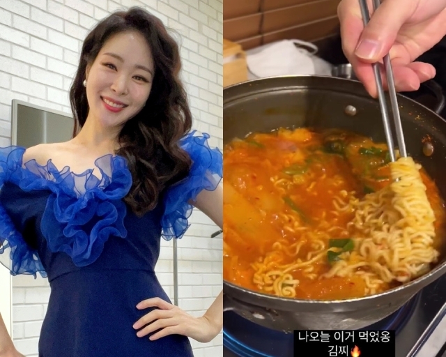 이에 미자는 "엇? 나도 비슷한 거 먹음"이라며 "나 오늘 이거 먹었어. 김찌"라는 글과 함께 짧은 영상을 게재했다. 영상에는 미자가 한 끼 식사로 즐긴 김치찌개가 팔팔 끓고 있다. 살짝 쫄아든 듯한 국물에서 건지는 라면사리가 절로 군침을 돌게 한다. 키 170cm에 몸무게 49kg임을 인증한 미자의 예사롭지 않은 메뉴 선택이 감탄을 자아낸다.