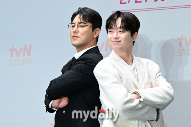 [마이데일리 = 곽경훈 기자] 4일 오후 서울 라마다 서울 신도림호텔에서 진행된 tvN STORY ‘잘생긴 트롯’ 제작발표회에서 MC 장민호(왼쪽)과 이찬원이 포즈를 취하고 있다. ‘잘생긴 트롯’은 연예계 대표 12명의 남자 스타들이 트롯에 진정성을 가지고 도전하는 신(新) 음악 예능이다.