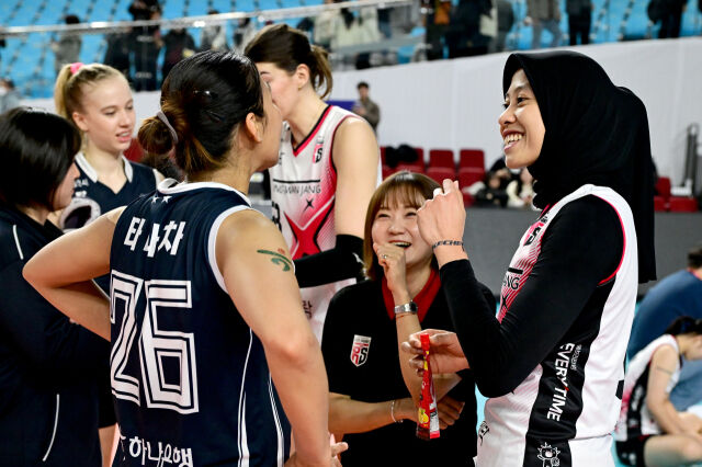 김천실내체육관에서 열린 한국도로공사와 정관장의 경기에서는 국적이 다른 4명의 외국인 선수의 다정한 모습이 포착됐다. 이날 경기는 풀 세트까지 가는 접전을 벌어졌고 정관장이 세트 스코어 3-2(20-25 29-27 19-25 25-21 15-11)로 승리했다. 경기 후 승리한 정관장도 패배한 한국도로공사도 지칠 대로 지친 상황, 그런데 니콜로바(불가리아), 타나차(태국), 부키리치(세르비아), 메가(인도네시아)는 경기가 끝나자 마자 모였다. 양 팀 통역까지 국적을 초월한 만남에는 웃음꽃이 가득했고 그녀들은 이날을 기억하기 위해 기념 촬영도 했다.