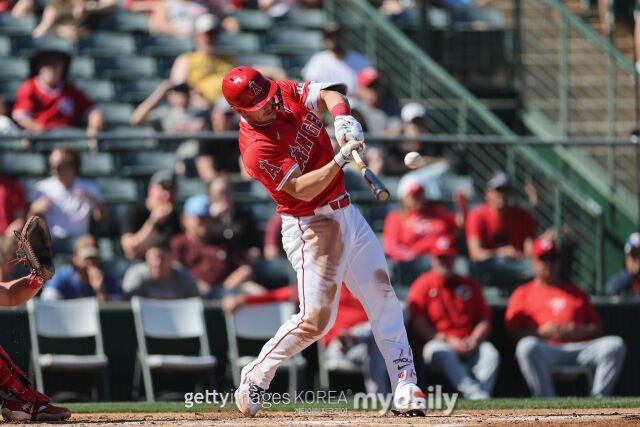 트라웃은 6일(한국시각) 미국 애리조나주 템피 디아블로 스타디움에서 열린 2025 메이저리그 LA 다저스와 시범경기에 3번 우익수로 선발 출전해 3타수 1안타 1타점을 기록했다.