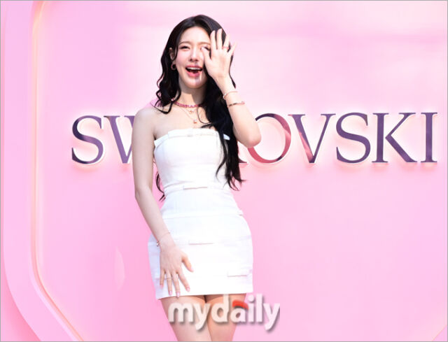 마지막으로 도착한 미연은 몸에 밀착한 화이트 오프숄더 미니 원피스에 레드 크리스털 목걸이로 네크라인에 포인트를 준 패션을 선보였다. 도착부터 화사한 미소와 포토타임 중에도 장난스러운 포즈로 팬과 소통하며 현장을 즐겼다.